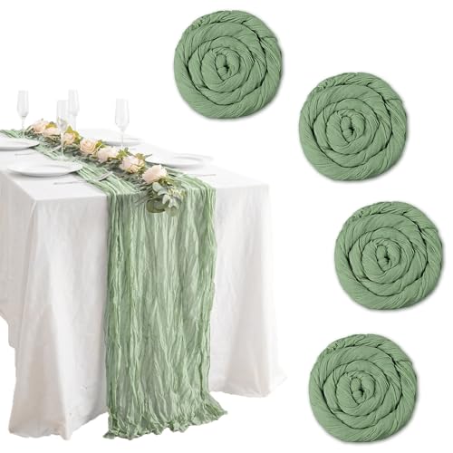 IULONEE Lot De 4 Chemins De Table en Mousseline De Soie 90x400cm Nappe en Étamine en Gaze Semi-Transparente Nappe De Table Cheesecloth Tablerunner Decoration pour Deco Mariage Decoration Champetre