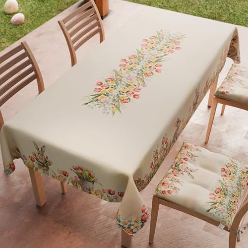PETTI Artigiani Italiani - Nappe de Paques, Nappes Rectangulaire Anti Taches pour Pâques, Nappe de Table Rectangulaire 6 Places, 180x140 cm, Tulipani, 100% Made in Italy