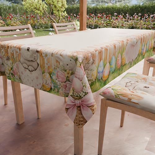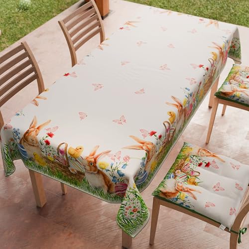 PETTI Artigiani Italiani - Nappe de Paques, Nappes Rectangulaire Anti Taches pour Pâques, Nappe de Table Rectangulaire 6 Places, 180x140 cm, Bunny, 100% Made in Italy
