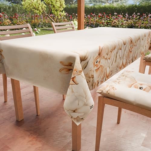 PETTI Artigiani Italiani - Nappe de Paques, Nappes Rectangulaire Anti Taches pour Pâques, Nappe de Table Rectangulaire 6 Places, 180x140 cm, Rabbit, 100% Made in Italy