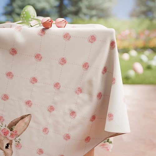 PETTI Artigiani Italiani - Nappe de Paques, Nappes Rectangulaire Anti Taches pour Pâques, Nappe de Table Rectangulaire 6 Places, 180x140 cm, Pink Rabbit, 100% Made in Italy