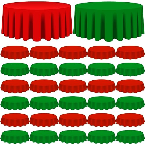 Amylove Lot de 48 nappes rondes en plastique jetables imperméables et décoratives pour Halloween, Thanksgiving, Noël (rouge, vert)