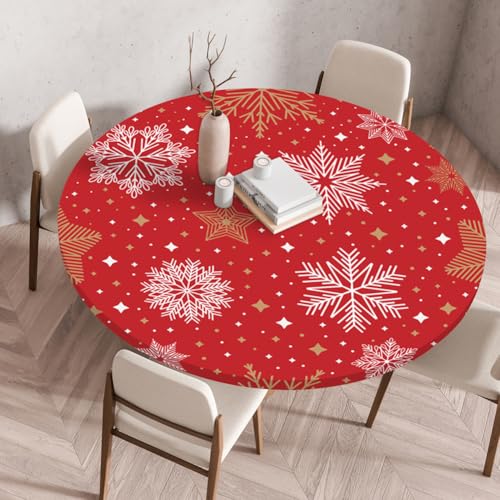 Treer Nappe Ronde, Nappes Rondes avec Bord Élastique, 3D Rose Jour de Noël Nappe Exterieur Lavable Nappes Polyester Anti Taches Nappe de Table pour Nouvel, Fête de Noël (110cm,Flocon de Neige)