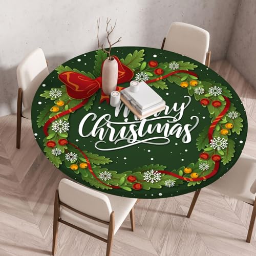 Odot Noël Nappe Ronde Exterieur Elastique Nappe Ronde Imperméable Anti Tache Couverture de Table avec Bord Élastique Noël Bonbons Nappes Rondes pour Cuisine Jardin (Vert,100cm)