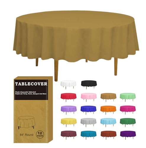 D&Z Lot de 12 nappes Rondes jetables en Plastique doré de 213,4 cm pour fête, Anniversaire, Mariage, Noël