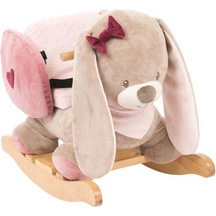 Nattou Animal à Bascule en Coton et Polyester (Tissu Éponge), Lapin Bonnie, 63 x 33 x 45 cm, Susie et Bonnie, Marron