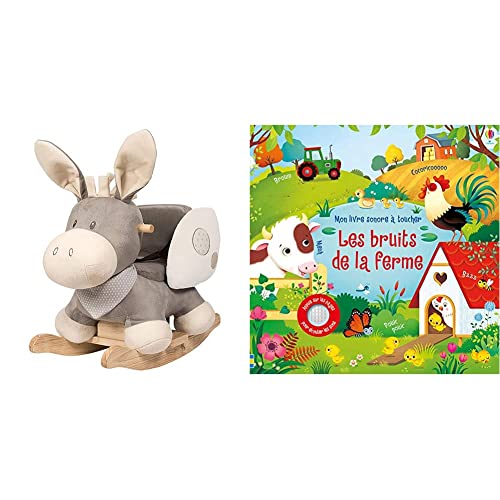Nattou Bascule Âne Cappuccino, 10-36 Mois, 60 x 39 x 50 cm, Beige & Les bruits de la Ferme - Mon Livre sonore à Toucher