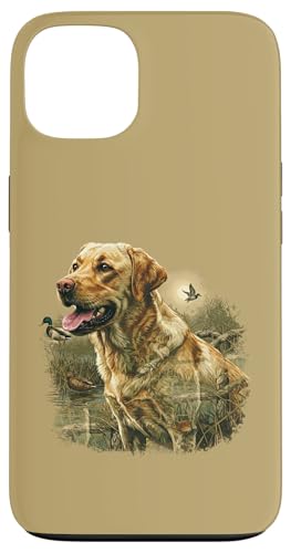 Chien Labrador jaune Nature Lac Canards Chasse Camouflage Scène Coque pour iPhone 13