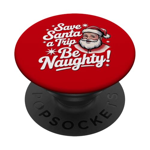 Save Santa A Trip Be Naughty Funny Christmas Retro Années 50 PopSockets PopGrip Adhésif