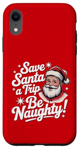 Save Santa A Trip Be Naughty Funny Christmas Retro Années 50 Coque pour iPhone XR