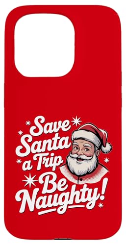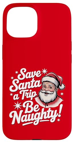 Save Santa A Trip Be Naughty Funny Christmas Retro Années 50 Coque pour iPhone 15