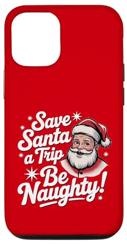 Save Santa A Trip Be Naughty Funny Christmas Retro Années 50 Coque pour iPhone 17