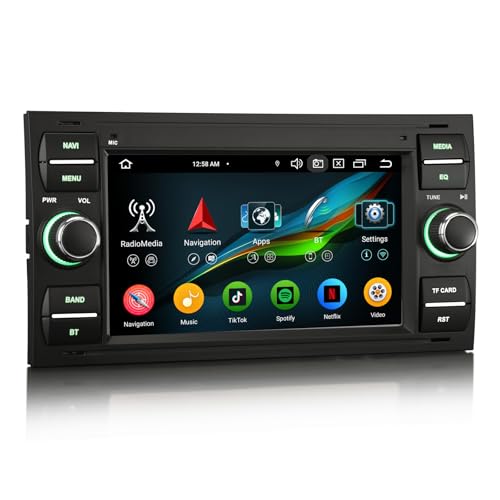 Erisin 4Go+64Go 8 Cœurs Android 14 Autoradio Bluetooth 5.0 pour Ford Focus C-Max S-Max Galaxy Kuga Fiesta Transit GPS Navigateur Voiture Stéréo sans Fil CarPlay Android Auto WiFi USB 4G Dab+ FM Radio