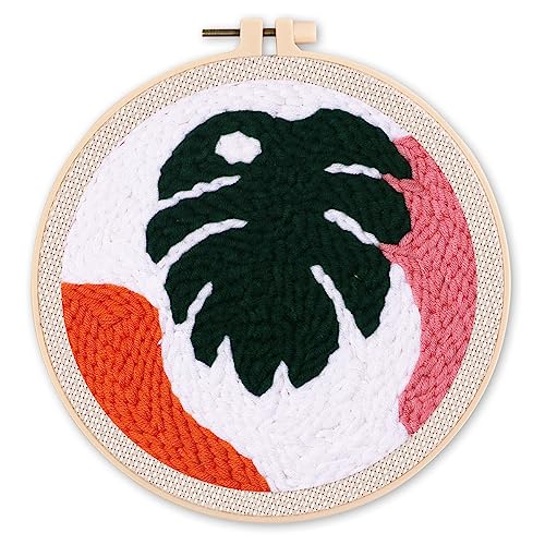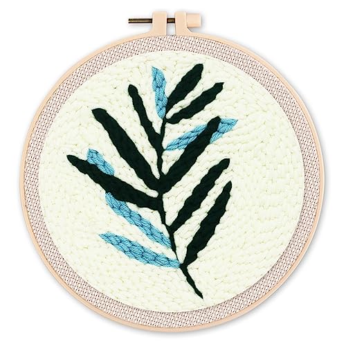 Figured'Art Punch Needle Kit Complet pour Adultes et Enfants - Feuille Bi-Colore - Parfait pour Débutant. Set prêt à broder taille 20x20cm avec cadre circulaire