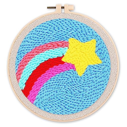 Figured'Art Punch Needle Kit Complet pour Adultes et Enfants - Étoile Filante - Parfait pour Débutant. Set prêt à broder taille 20x20cm avec cadre circulaire