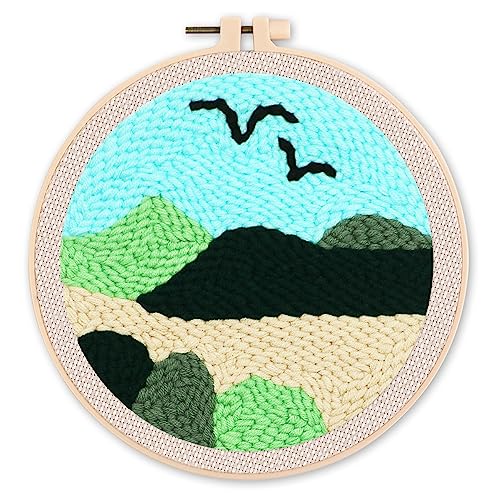 JSRQT Kit de Démarrage, DIY Handcraft Punch Needle Broderie Kit, Kits de Démarrage D'aiguilles à Broder pour Adultes et Débutants (Montagne)