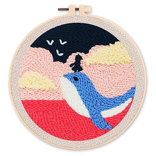 JSRQT Punch Needle Broderie Kit Whale pour Adultes Enfants Débutants Crafts D'Aiguilles à Poinçonner Adjustable avec Instructions