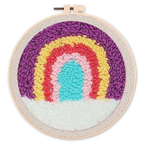 Figured'Art Punch Needle Kit Complet pour Adultes et Enfants - Arc en Ciel - Parfait pour Débutant. Set prêt à broder taille 20x20cm avec cadre circulaire