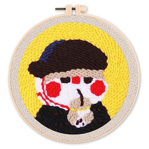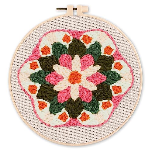 Figured'Art Punch Needle Kit Complet pour Adultes et Enfants - Boucle d'Oreille - Parfait pour Débutant. Set prêt à broder taille 20x20cm avec cadre circulaire