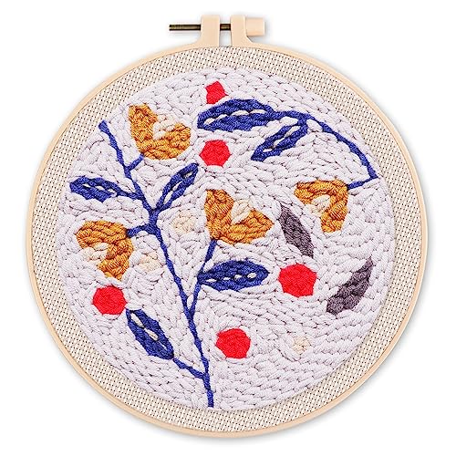 Figured'Art Punch Needle Kit Complet pour Adultes et Enfants - Branche Fleurie - Parfait pour Débutant. Set prêt à broder taille 20x20cm avec cadre circulaire