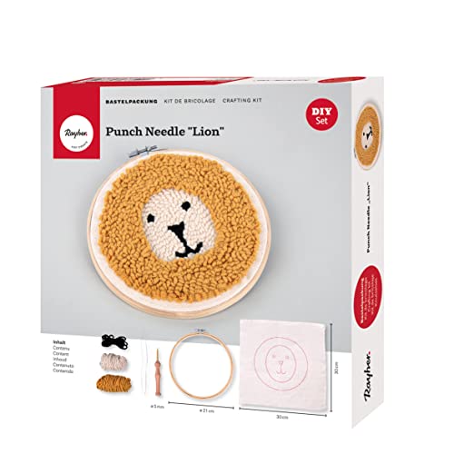 Rayher 69226000 kit Punch Needle Lion, kit de broderie, 21cm ø, boîte, 43003000