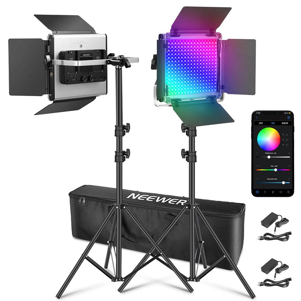 NEEWER 660 Pro II RGB Lampe Vidéo avec Contrôle App et Trépieds, Pack de 2 50W Éclairage Panneau LED avec 7000lux CRI97+ 3200K~5600K Lumiere pour Streaming de Jeux Enregistrement Youtube Photo Studio