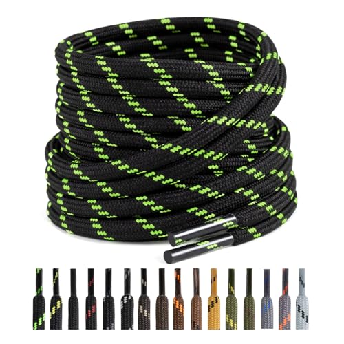 Puzeam 2 Paire Lacets Ronds pour Bottes, Lacets Résistants et Durables pour Chaussures de Travail, Chaussures de Randonnée, Chaussures de Sécurité Noir Vert néon 120 cm