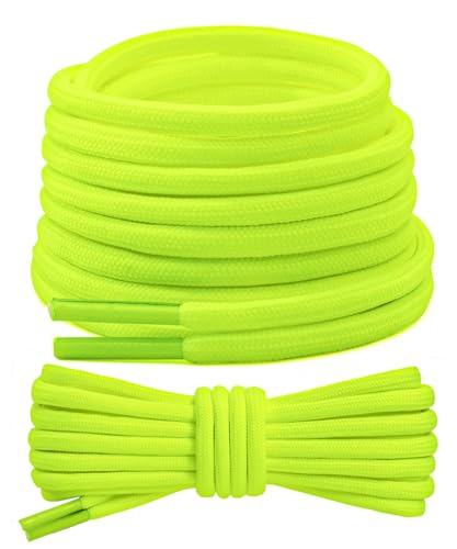 Stepace 2 Paires Lacets Ronds 4,5 mm Lacets Renforcés et Résistants pour Bottines, Chaussures de Randonnée, Chaussures de Travail, Chaussures de Marche Neon Green 120
