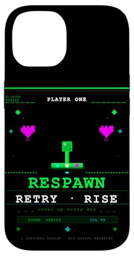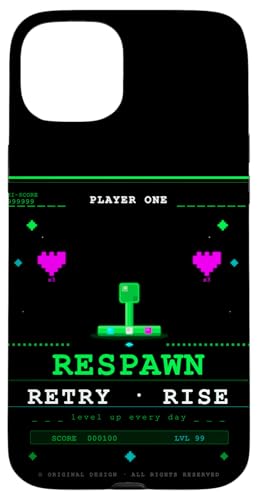 Respawn Retry Rise - Retro Pixel Gaming Neon Art Gamer Design Coque pour iPhone 15 Plus