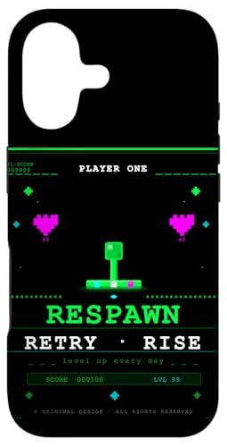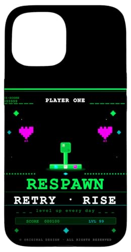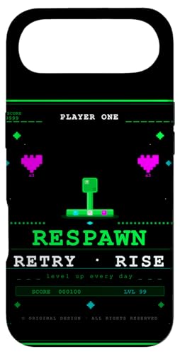 Respawn Retry Rise - Retro Pixel Gaming Neon Art Gamer Design Coque pour iPhone 17
