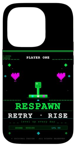 Respawn Retry Rise - Retro Pixel Gaming Neon Art Gamer Design Coque pour iPhone 14 Pro