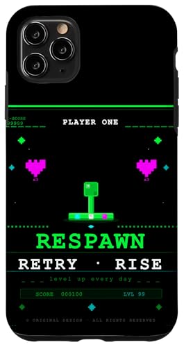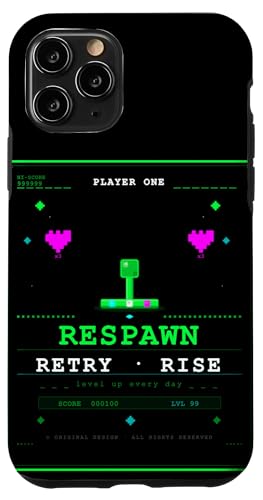 Respawn Retry Rise - Retro Pixel Gaming Neon Art Gamer Design Coque pour iPhone 11 Pro
