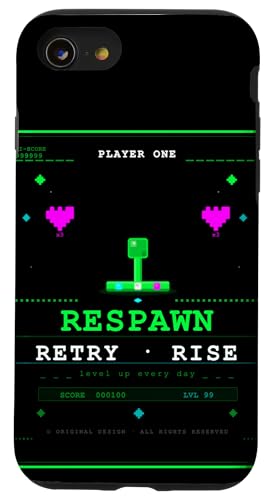 Respawn Retry Rise - Retro Pixel Gaming Neon Art Gamer Design Coque pour iPhone SE (2020) / 7/8