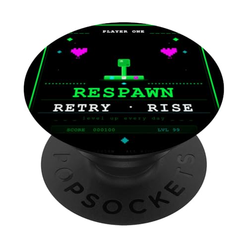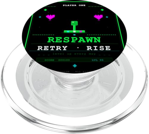 Respawn Retry Rise - Retro Pixel Gaming Neon Art Gamer Design PopSockets PopGrip pour MagSafe