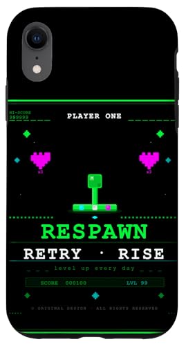 Respawn Retry Rise - Retro Pixel Gaming Neon Art Gamer Design Coque pour iPhone XR