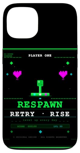 Respawn Retry Rise - Retro Pixel Gaming Neon Art Gamer Design Coque pour iPhone 13
