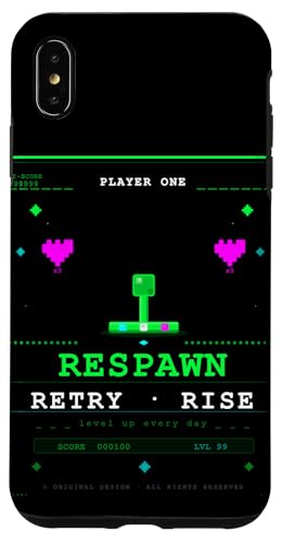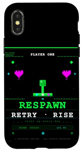 Respawn Retry Rise - Retro Pixel Gaming Neon Art Gamer Design Coque pour iPhone XS Max