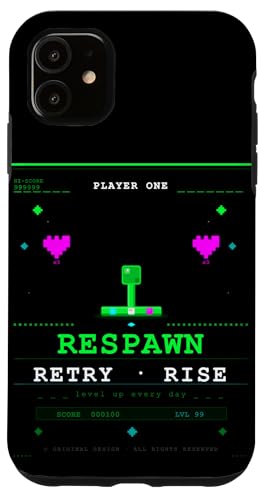Respawn Retry Rise - Retro Pixel Gaming Neon Art Gamer Design Coque pour iPhone 11