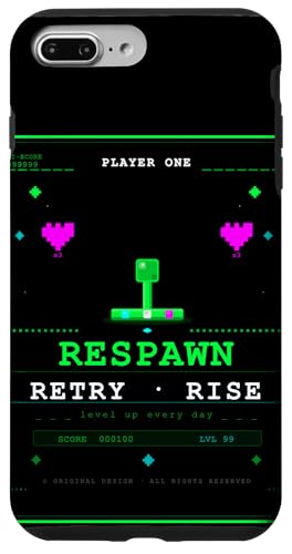 Respawn Retry Rise - Retro Pixel Gaming Neon Art Gamer Design Coque pour iPhone 7 Plus/8 Plus