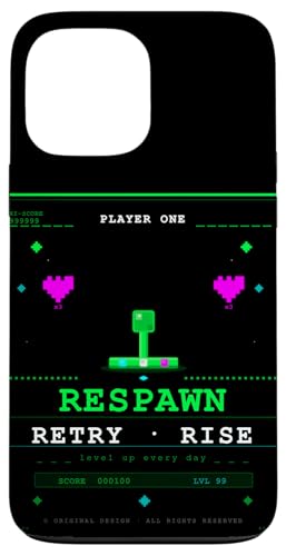 Respawn Retry Rise - Retro Pixel Gaming Neon Art Gamer Design Coque pour iPhone 13 Pro Max