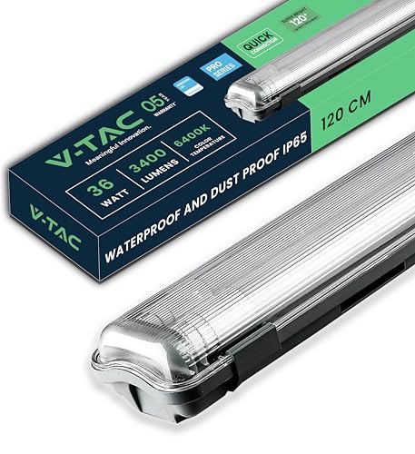 V-TAC Réglette LED Étanche 120 cm - 36W - Chip Samsung - Haute Luminosité - IP65 - Plafonnier Lampe 3400 Lumen pour Plafond, Garage, Magasin - Double Tube Led - Lumière 4000K Blanc Neutre
