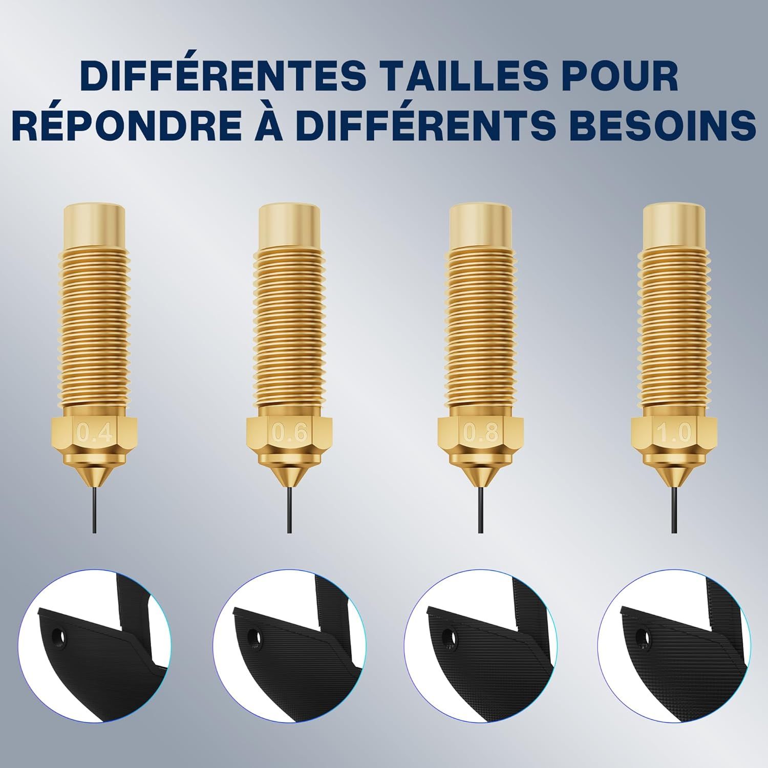 MEVRONISSHOP-10 Pièces Buses d'imprimante Laiton Buse 0.4 mm, 0.6 mm, 0.8 mm, 1.0 mm, avec outils de bricolage compatibles pour Neptune 4 Plus et Neptune 4 Max