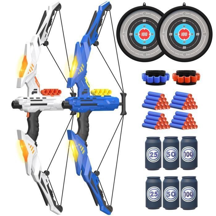 Jeu de flèches et darc pour enfants Compatible avec les balles Nerf Gun avec 40 fléchettes Nerf 2 Cibles 6 cibles de bouteille