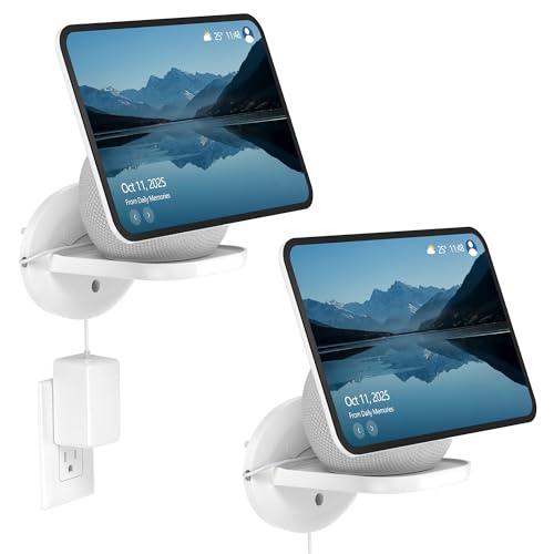 HomeMount Support Mural pour Show 11 & Dot Max, Support Universel pour HomePod Mini, Google Nest Mini, Point Nest Wi-FI & Caméras – Gain de Place avec Gestion des Câbles Intégrée (Blanc - 1p)