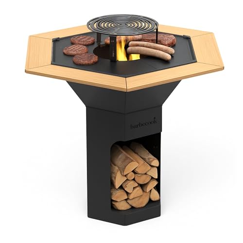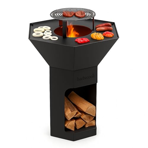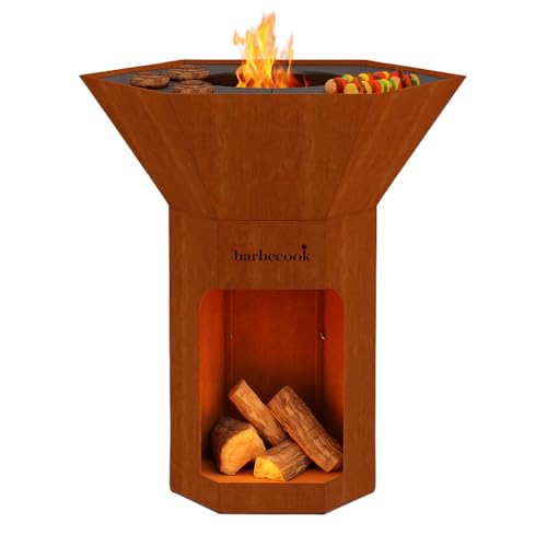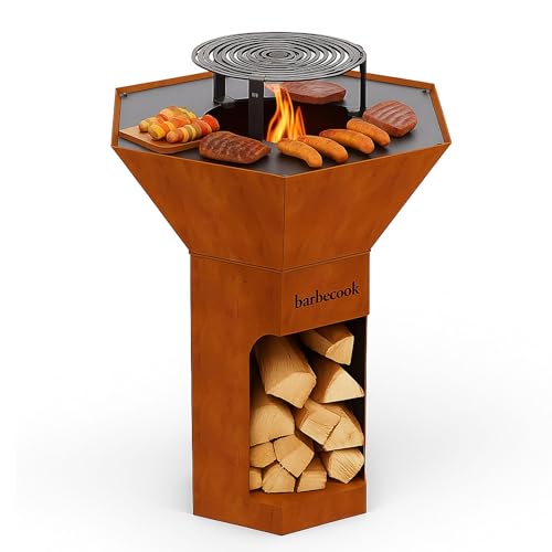 Barbecook Barbecue brasero Nestor Original, Barbecue à Bois Exterieur avec plancha en Acier corten, 92x92x101cm