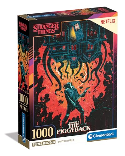 Clementoni | Stranger Things Puzzle 1000 Pièces pour Adultes | Netflix Chapitre The Piggyback | Poster Inclus | Jeu de Société | Format 70×50 Cm | Jeu de Société Écoresponsable