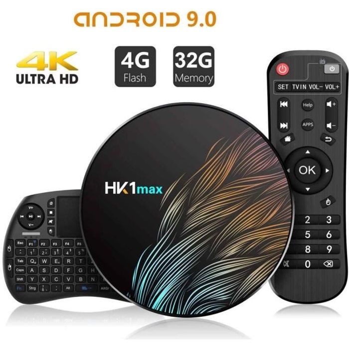 Smart TV Box Android 9.0 4K Media Player Netflix Youtube Option Assistant vocal Google, 4GB 64GB clavier