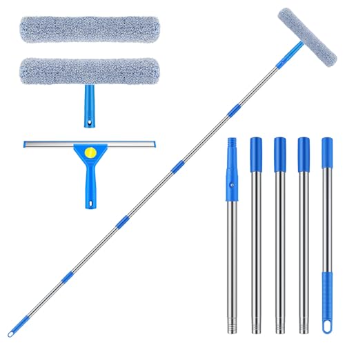 Raclette vitre télescopique 2 m, kit Lave-vitre Professionnel avec Manche démontable et 2 mouilleurs, Balai raclette Sol pour Nettoyage vitre, Sol, Douche et Pare-Brise Voiture