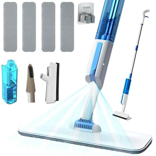 Masthome Balai Plat Microfibre 151 cm, Balai Serpillère Professionnel avec Tête pivotante 360°, Serpillère avec 4 Tampons Double Face Microfibre, pour Nettoyage de Sol, Comprend 1 Grattoir Nettoyage