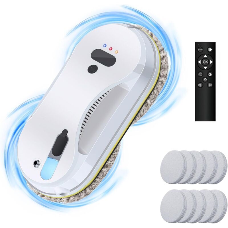 Robot Laveur de Vitre Automatique 5600Pa - 3 Modes de Nettoyage - Télécommande - 10 Chiffons - pour Toutes Surfaces Lisses